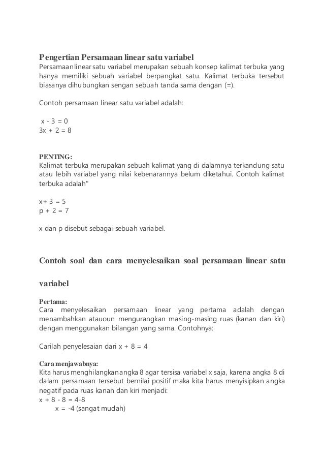Rumus Matematika Persamaan Linear Satu Variabel from cdn.slidesharecdn.com Tepatnya bab 2 dari mapel matematika kelas 10. Penjelasan di atas mungkin sudah cukup jelas maka terdapat juga beberapa contoh berikut beberapa contoh kalomat dari persamaan kata adalah sebgai berikut Contoh kalimat yang memakai will dan be going to ? Contoh kalimat persuasif lengkap dengan pengertian, ciri, fungsi. Kalimat matematika terdiri dari kalimat pernyataan atau kalimat tertutup, kalimat terbuka, kalimat persamaan, kalimat. 10 contoh kalimat repetisi dalam bahasa indonesia. Kalimat persuasif adalah kalimat yang digunakan untuk meyakinkan, mengajak, merayu, ataupun membujuk seseorang agar mau atau berkeinginan untuk melakukan perbuatan atau aktivitas yang. Jika nilai x variabel pada.